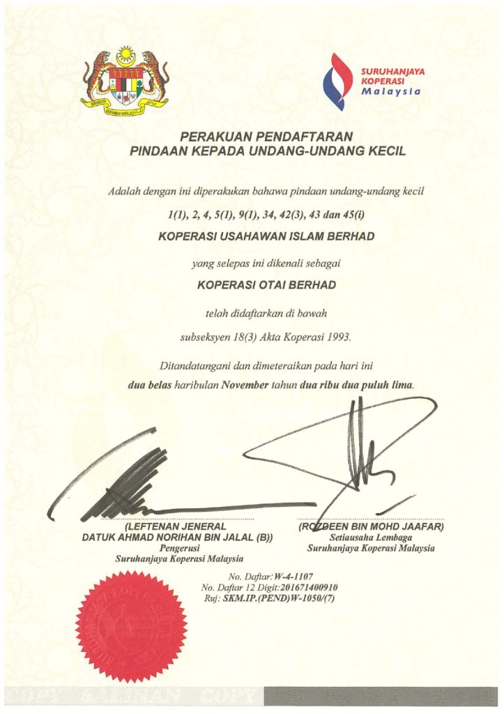 KOPERASI OTAi BERHAD – Dahulu dikenali sebagai Koperasi Usahawan Islam Berhad